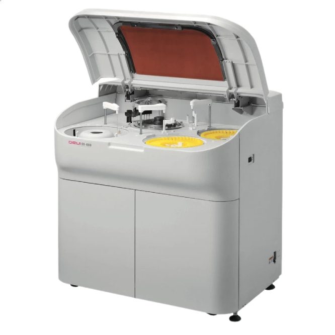 DIRUI CS-400 — напольный автоматический биохимический анализатор. Производительность до 400 тестов в час для биреагентных методик, с ионоселективным блоком (ISE) — до 800 тестов в час. Анализатор отлично подходит для лабораторий со средней производительностью 1200–2000 биохимических тестов в день (100–150 пациентов по 10–15 параметрам). Два охлаждаемых ротора для реагентов на 90 позиций. Ротор для образцов, контролей и калибраторов на 115 позиций. Реакционный ротор на 120 многоразовых пластиковых кювет. Опционально комплектуется ионоселективным блоком (ISE) производительностью до 400 потенциометрических тестов в час. Управляется с помощью внешнего компьютера со специальным ПО на русском языке.