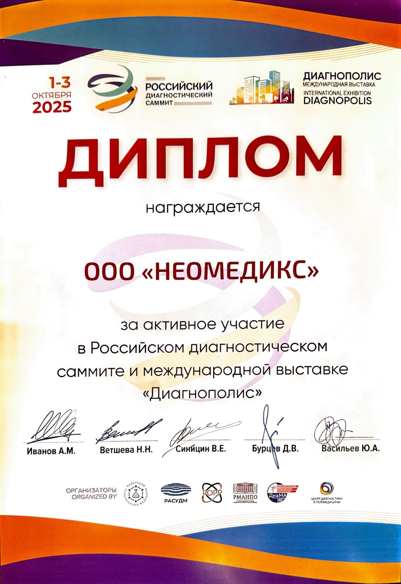 По результатам взаимодействия с сотрудниками ООО «НЕОМЕДИКС» хотелось бы отметить высокую квалификацию специалистов, участвующих в процессе установки, настройки и эксплуатации оборудования.